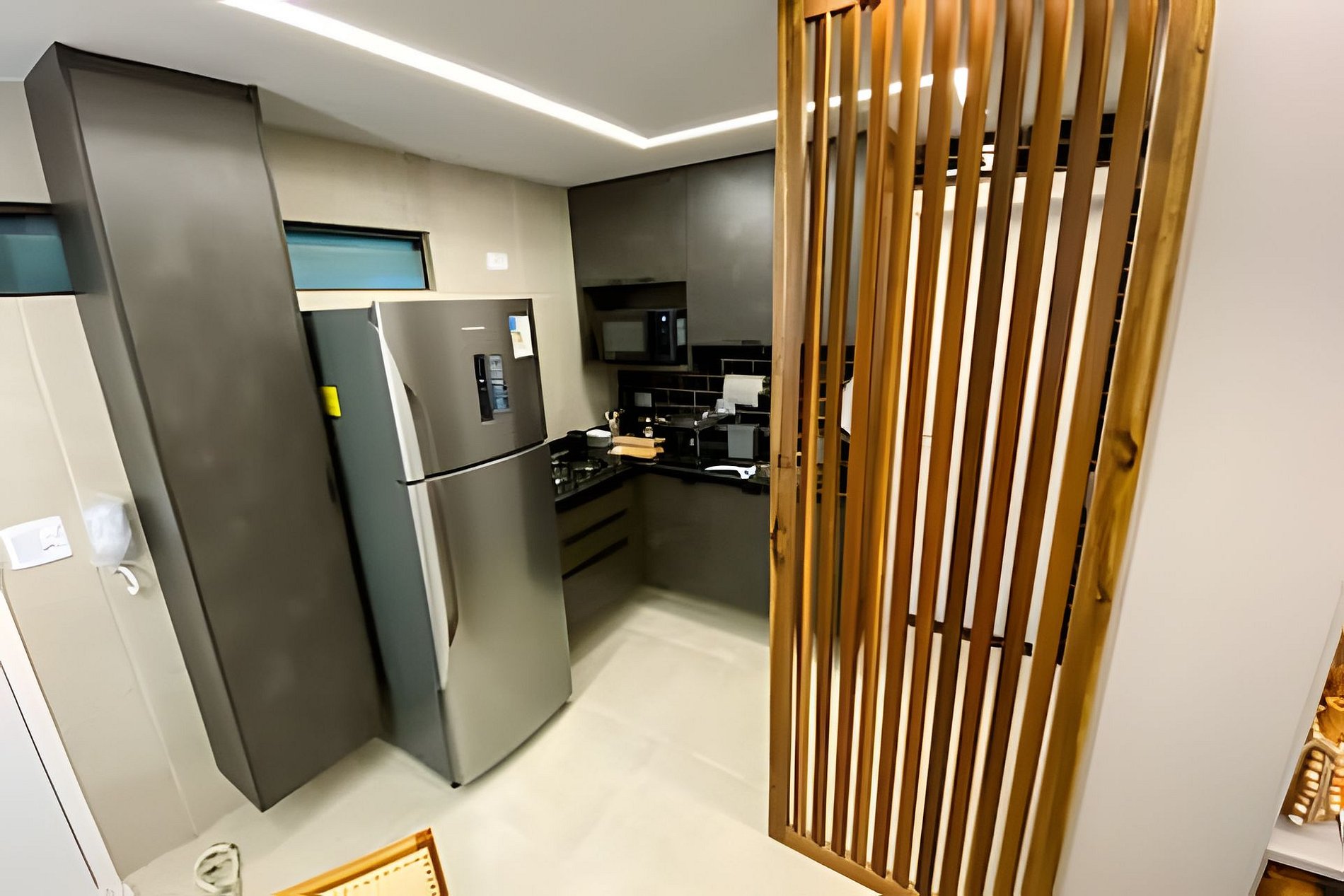 No espaço tem estrutura para preparo de refeições, panelas e utensílios e louça para servir. Dispõe também de uma varanda gourmet para desfrutar da vista. É possível utilizar-se de uma lavanderia, presente em cada andar, para lavagens manuais. O espaço também possui uma brinquedoteca, salão de jogos e academia. Além disso, uma churrasqueira com utensílios.