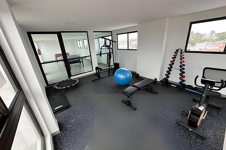 O espaço também possui uma brinquedoteca, salão de jogos e academia. Além disso, uma churrasqueira com utensílios.
