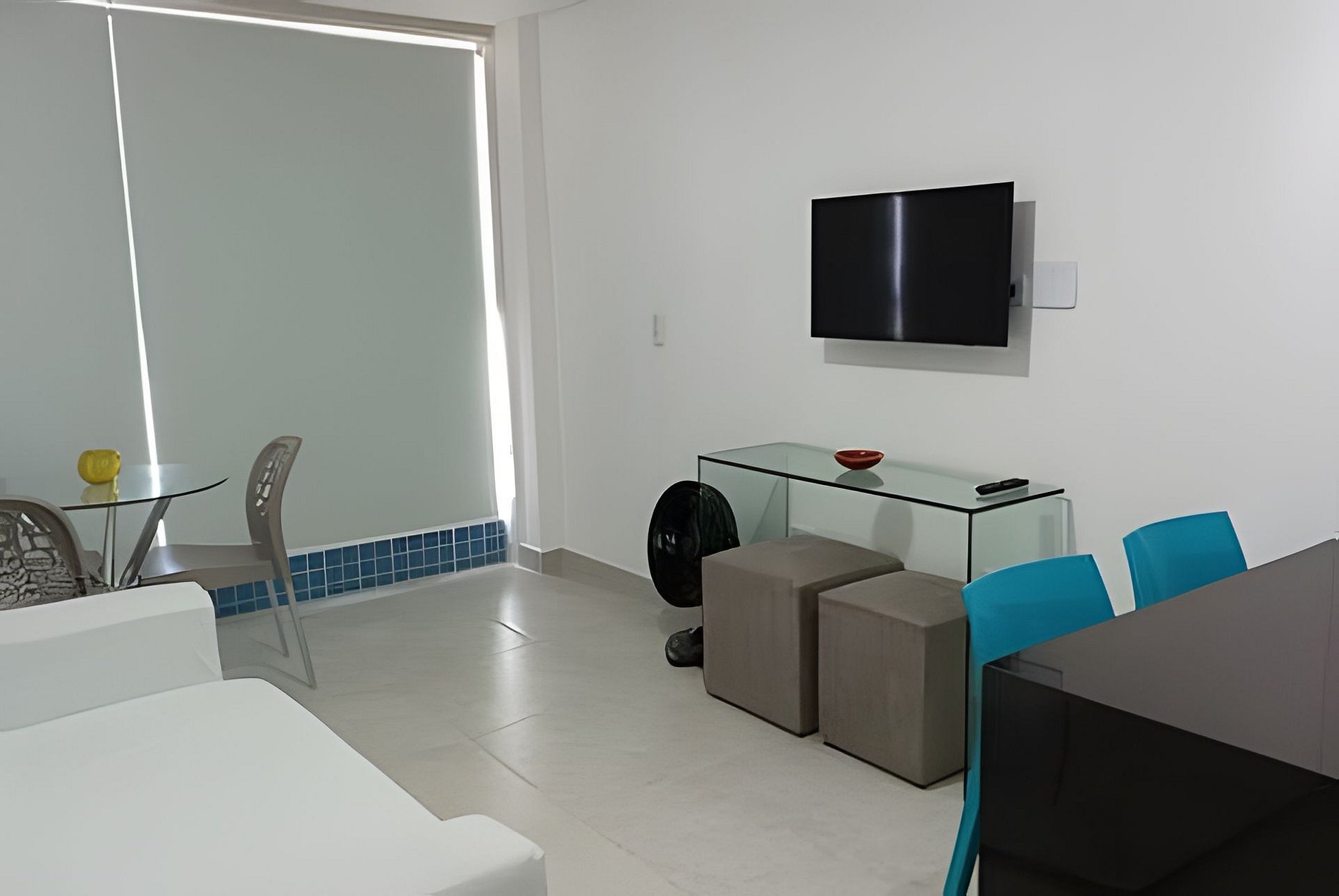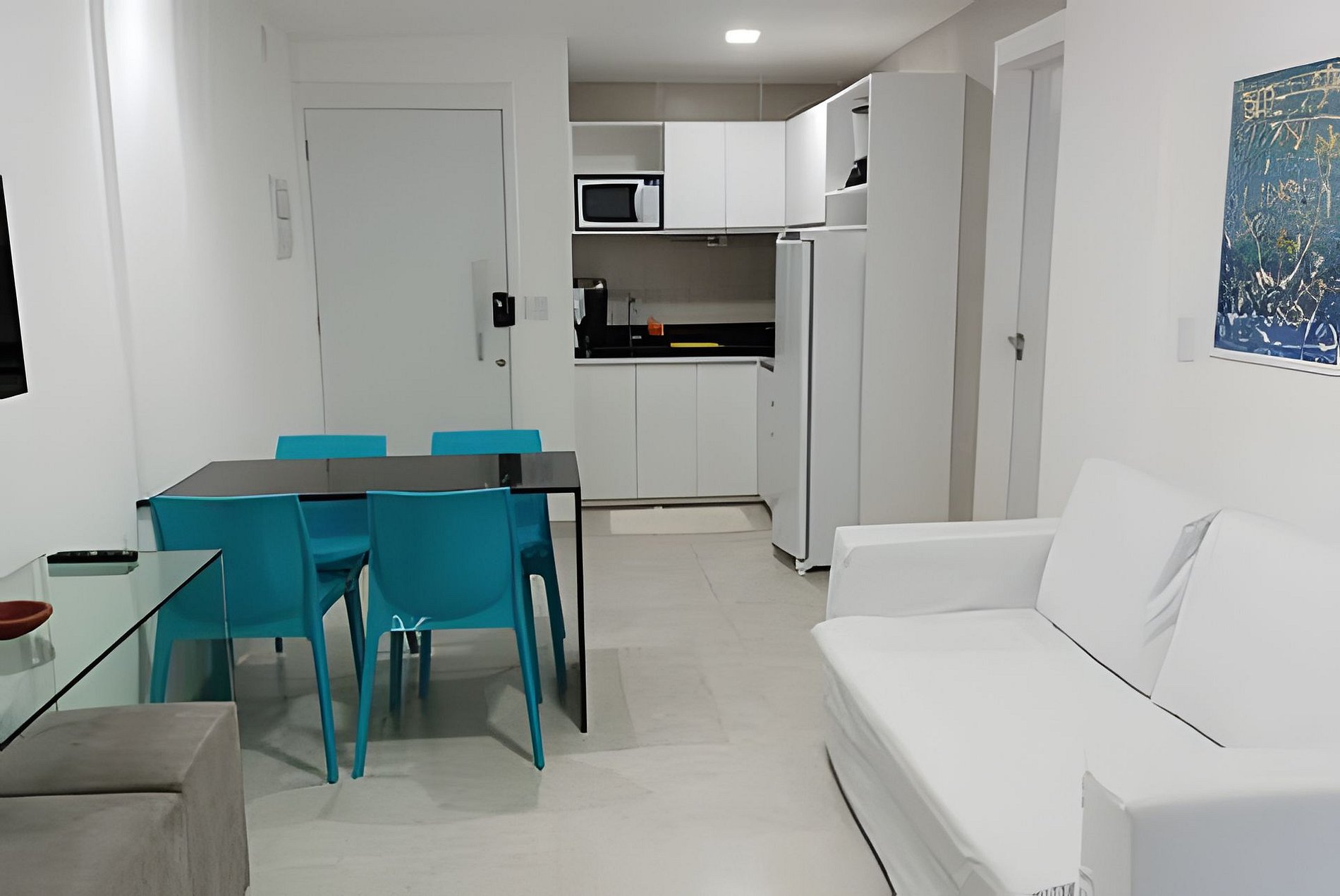 O Flat possuí cozinha com todos os utensílios básicos. Sala com ar-condicionado, TV Smart" e sofá-cama. 1 Quarto com cama de casal, roupeiro e ar condicionado. Banheiro com chuveiro quente.