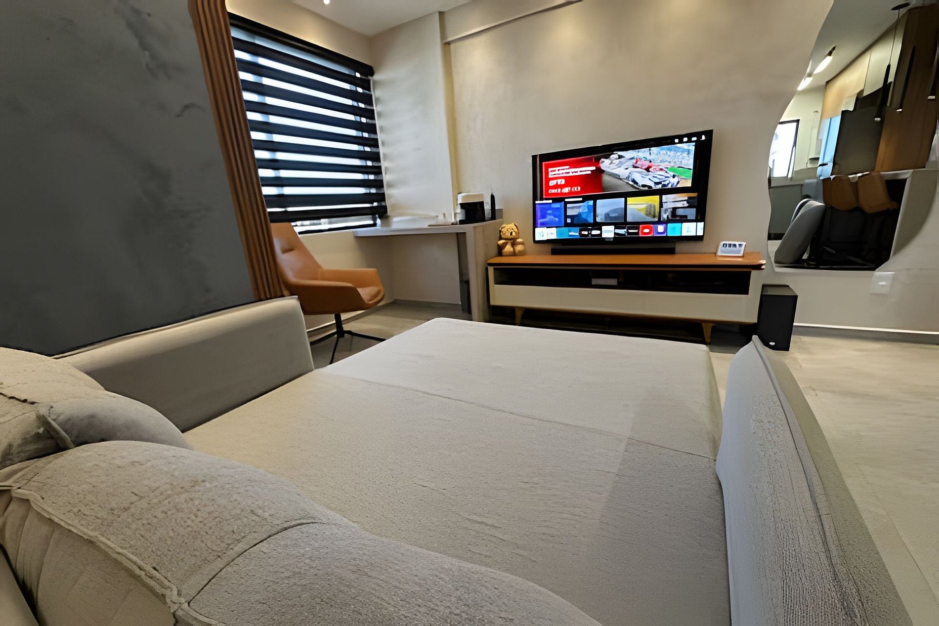 O spazio fica localizado no coração de boa viagem, de fácil acesso ao aeroporto, shopping, praia e todo o comércio local, o prédio possui estacionamento interno com tomadas 16A para carregar seu veículo, piscina na cobertura, e uma vista de tirar o folego tanto do rooftop como do flat.